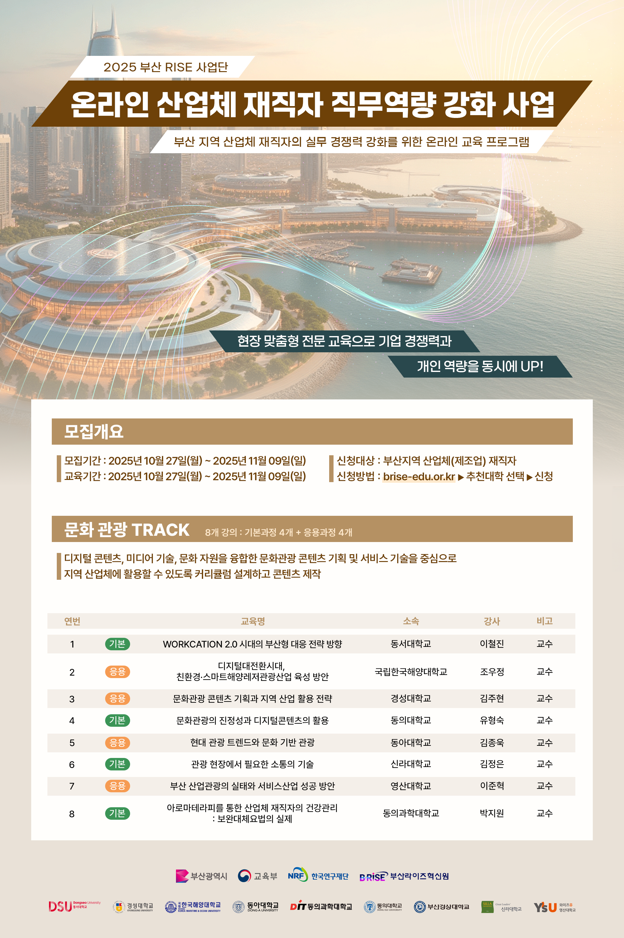 [RISE] 2025년 온라인 산업체 재직자 직무역량 강화 사업 참가자 모집 안내(문화 관광 트랙)
