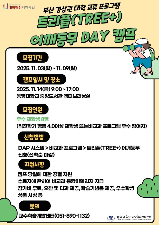 [교수학습개발센터] 2025학년도 트리플(TREE+) 어깨동무 캠프 신청 안내